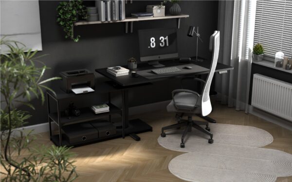 Galima pastatyti 90 laipsnių kampu ir tiesia linija su stalviršiu