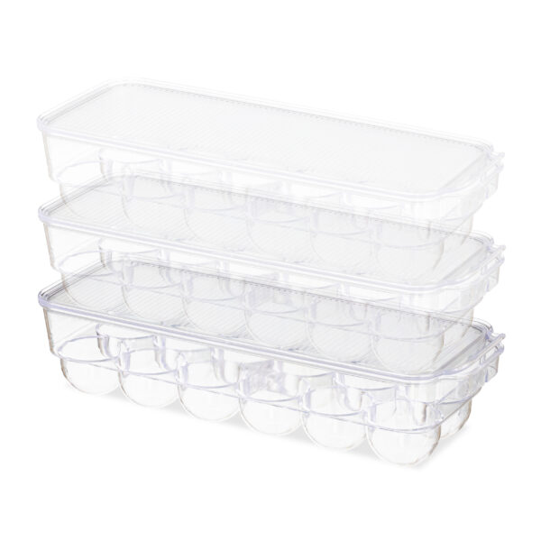 Ši kiaušinių dėžutė yra puikus sprendimas tiems, kurie nori efektyviai organizuoti savo šaldytuvą ir užtikrinti, kad kiaušiniai visada būtų lengvai pasiekiami ir saugiai laikomi. Dėl skaidrios išvaizdos visada žinosite, kada reikia papildyti kiaušinių atsargas.