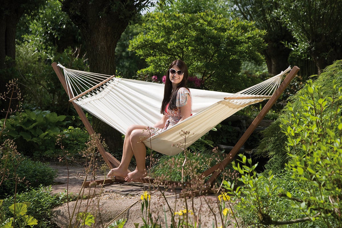 Patogus SAMBA hamakas su kaiščiu. Sukurta mėgautis atsipalaidavimo akimirka. Tiesiog pakabinkite jį balkone, terasoje ar sode. Pagaminta iš tvirtos ir patvarios medvilnės. Medinis skersinis išlaiko audinį visiškai atvirą, todėl lengviau stabiliai ir patogiai atsigulti į hamaką Privalumai: – labai prabangus ir patogus hamakas – patvari medvilnė 320gr / m² – Naudojamas paviršius : 230 x 120 cm – Medinis skersinis – maksimalus apkrova: 150 kg