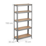 Sandėliavimo lentyna 150x75x30cm, šviesiai rudos/sidabrinės spalvos