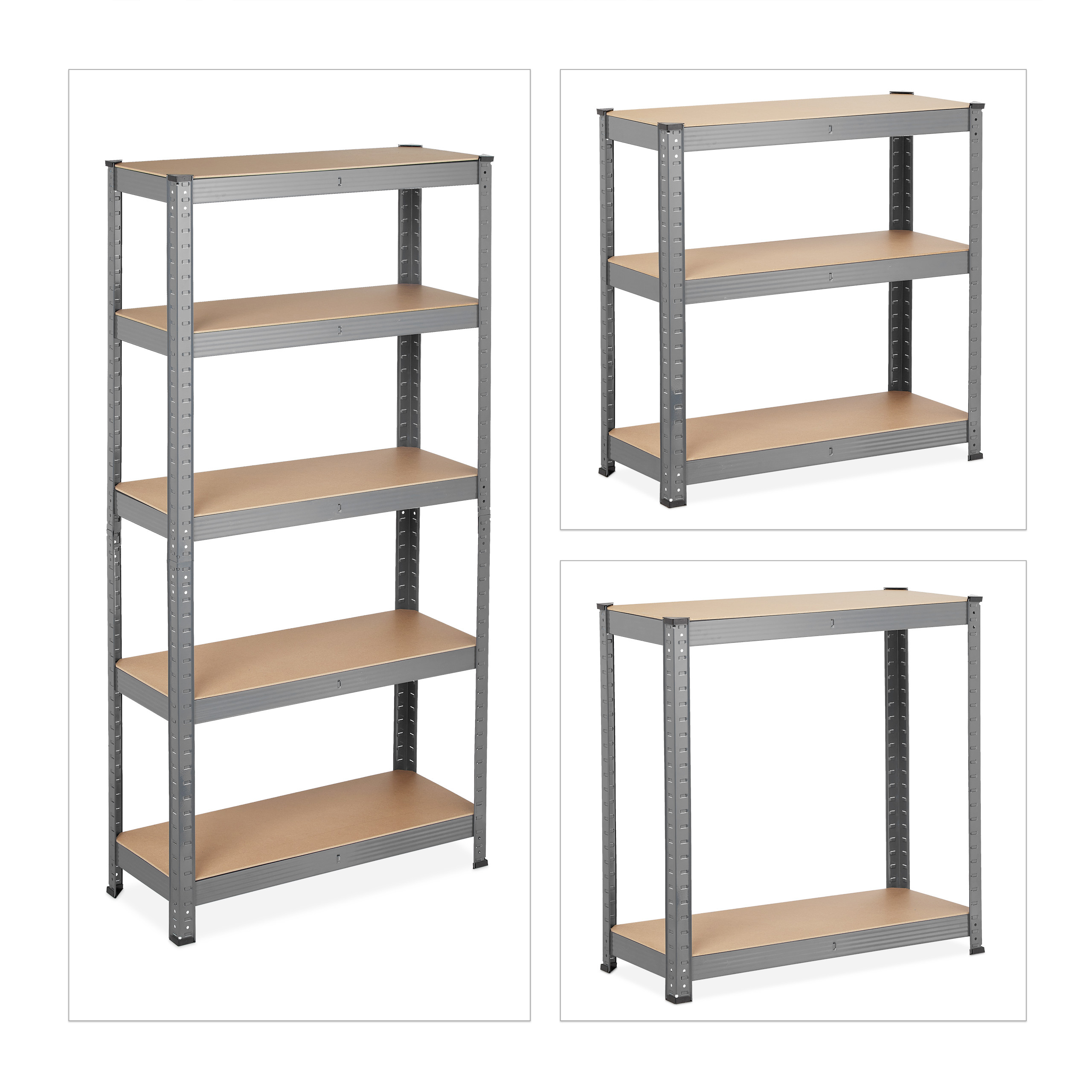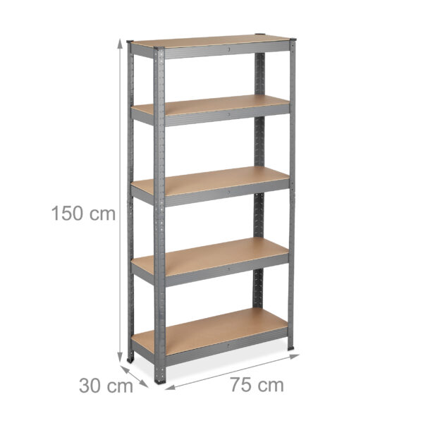 - Universalumas: 5 tvirtos MDF lentynos leidžia laikyti įvairius daiktus – nuo atsargų sandėliuke iki įrankių dirbtuvėse ar padangų garaže.