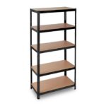 Pristatome Jums tvarią ir stabilią sandėliavimo lentyną, kuri puikiai tiks tiek namų, tiek garažo ar dirbtuvių erdvėms. Ši lentyna, pasižyminti elegantišku šviesiai rudos ir juodos spalvų deriniu, ne tik suteiks papildomos vietos daiktams, bet ir taps stilingu interjero akcentu.