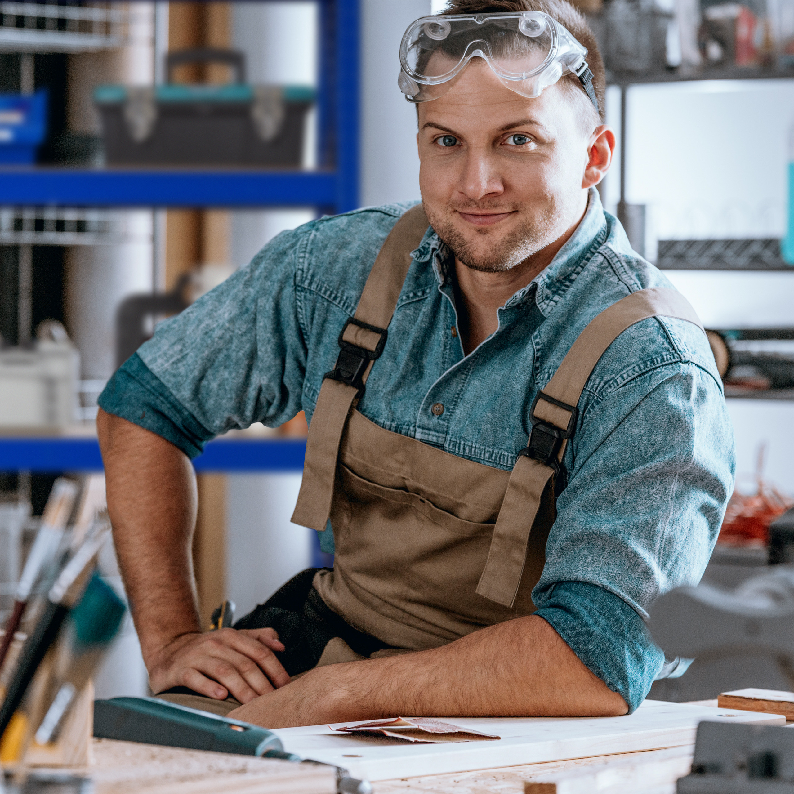 Sandėliavimo lentyna 180x90x45cm – Šviesiai Rudos/Mėlynos Spalvos