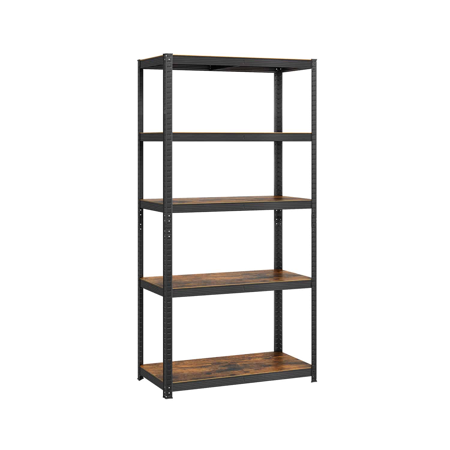 - Sustiprinti skersiniai po kiekviena metaline lentyna suteikia papildomo stabilumo.