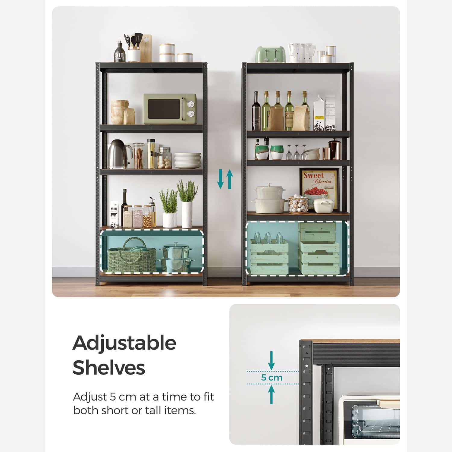 Šios SONGMICS sandėliavimo lentynos pranašumai iš pirmo žvilgsnio:
