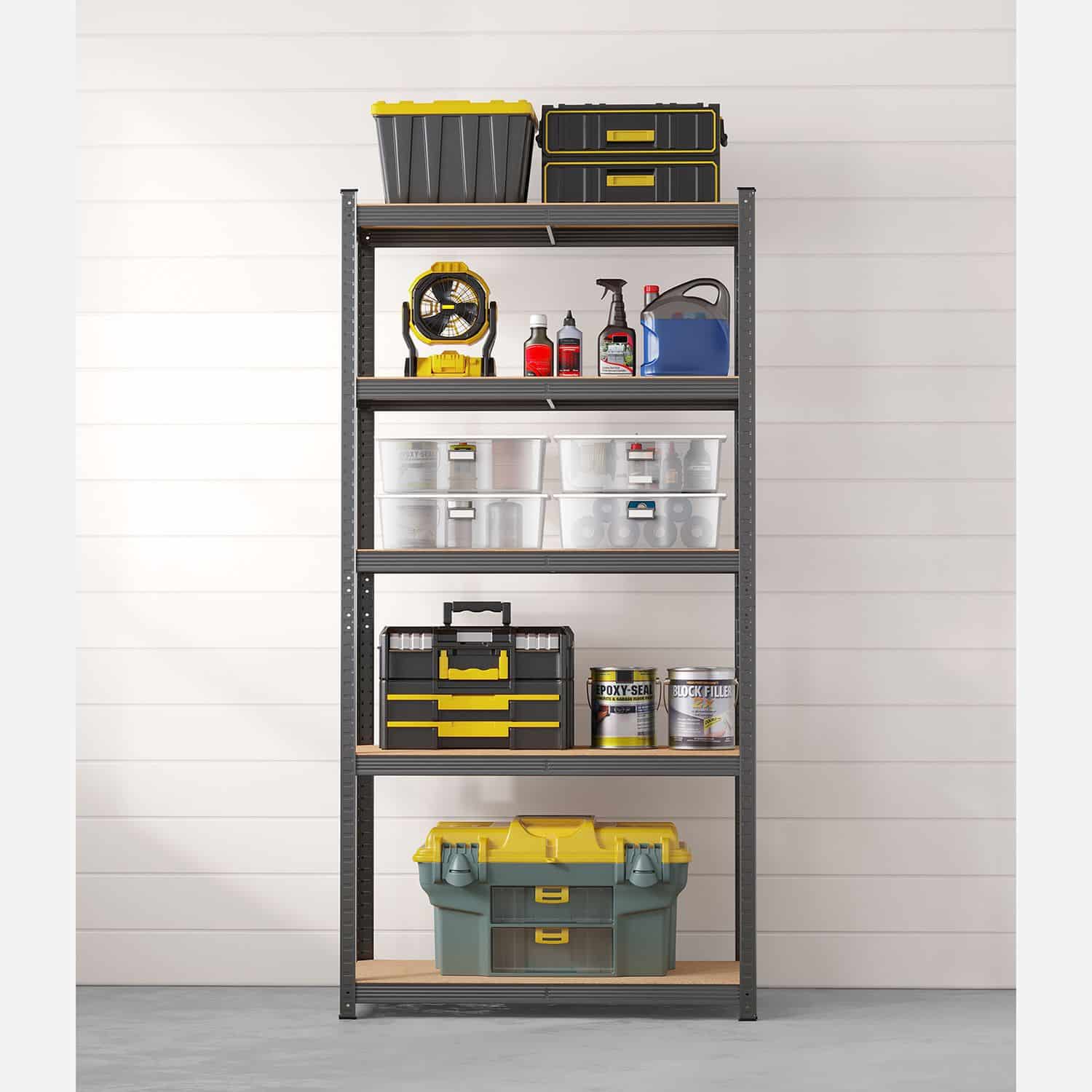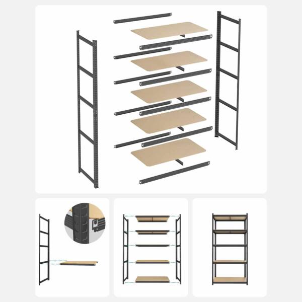 Ši tamsiai pilkos spalvos sandėliavimo lentyna yra puikus sprendimas jūsų namų ar biuro organizavimui. Pagaminta iš milteliniu būdu dengto plieno ir medžio dulkių plokštė (MDF) (vidutinio tankio medienos plaušų plokštės), ji užtikrina tvirtumą ir ilgaamžiškumą.