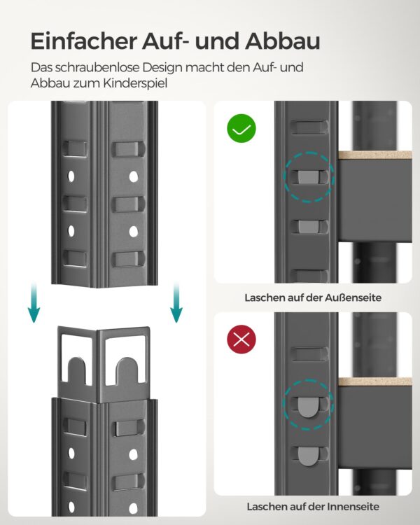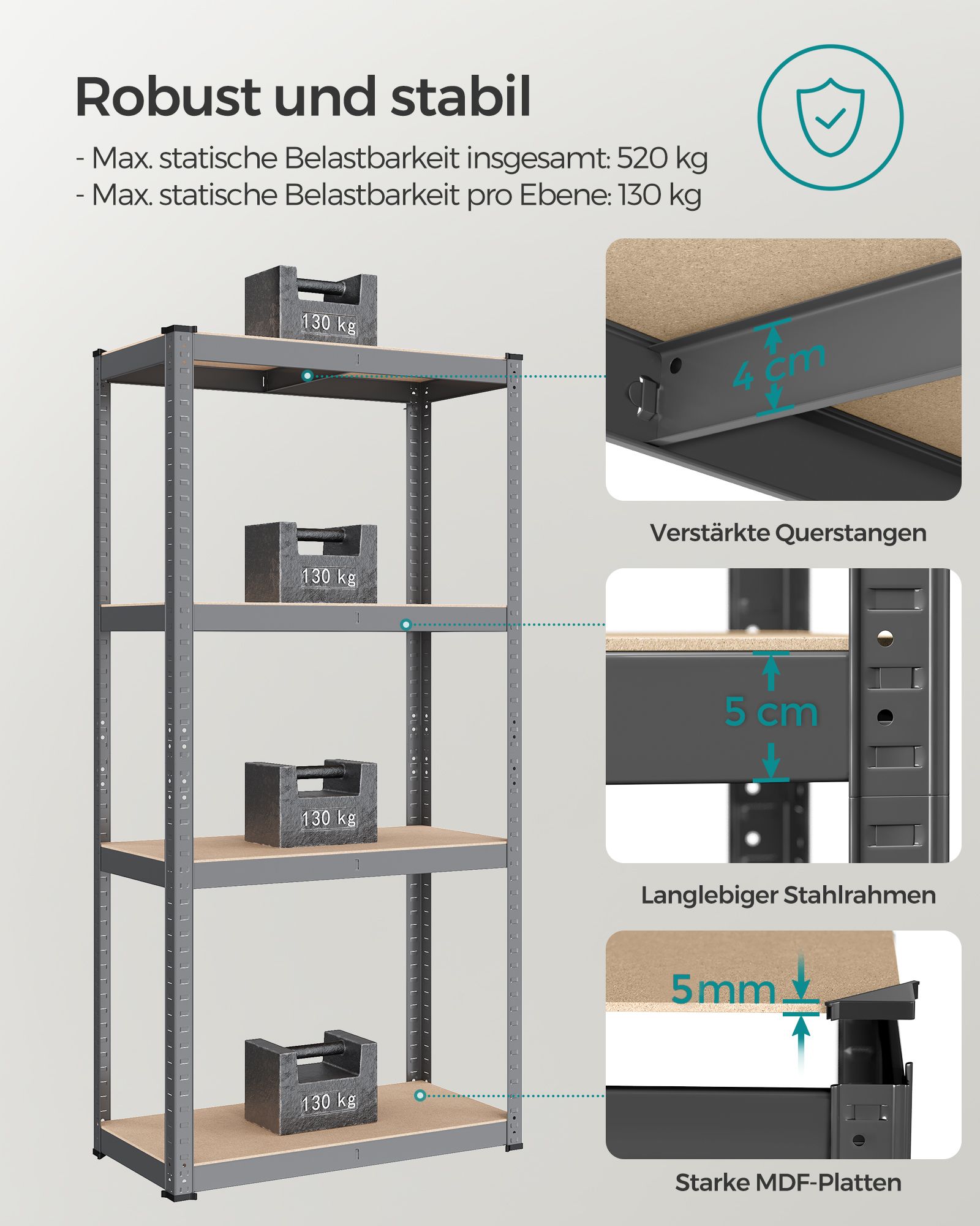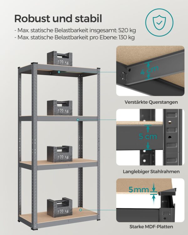 Ši lentyna ne tik suteikia pakankamai vietos jūsų daiktams, bet ir užtikrina jų saugumą bei stabilumą. Dėl savo tvirtos konstrukcijos ir aukštos kokybės medžiagų, ji yra ilgaamžė ir patikima. Pasirinkite šią sandėliavimo lentyną ir mėgaukitės tvarka bei estetika savo erdvėje.