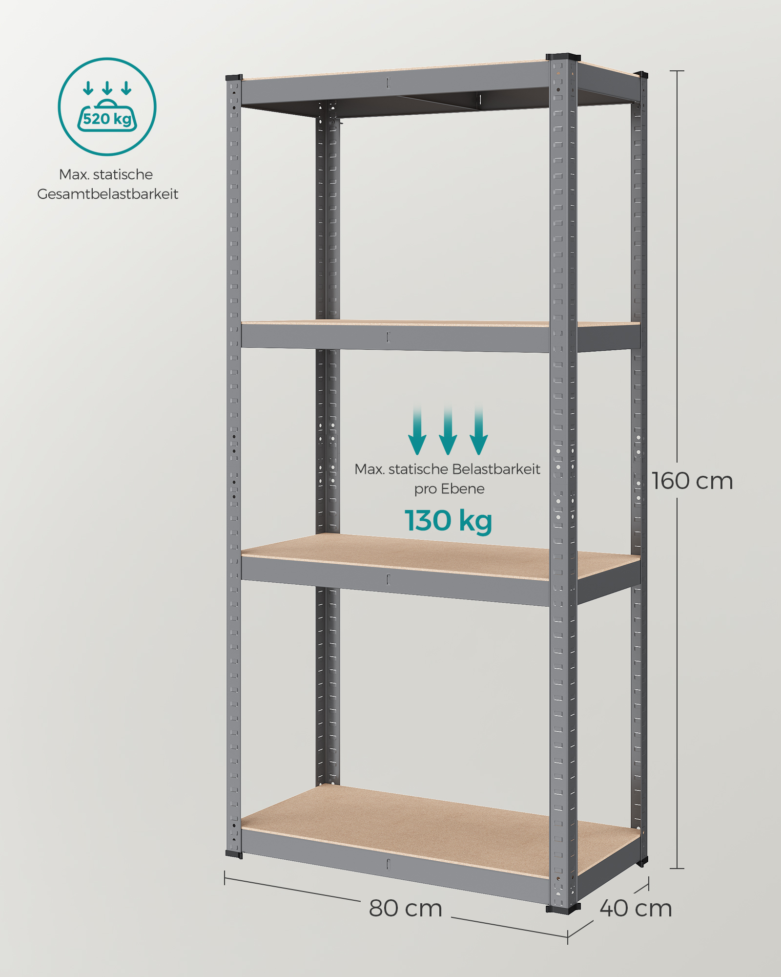 Sandėliavimo lentyna 40x80x160cm – Pilkos/Šviesiai Rudos Spalvos