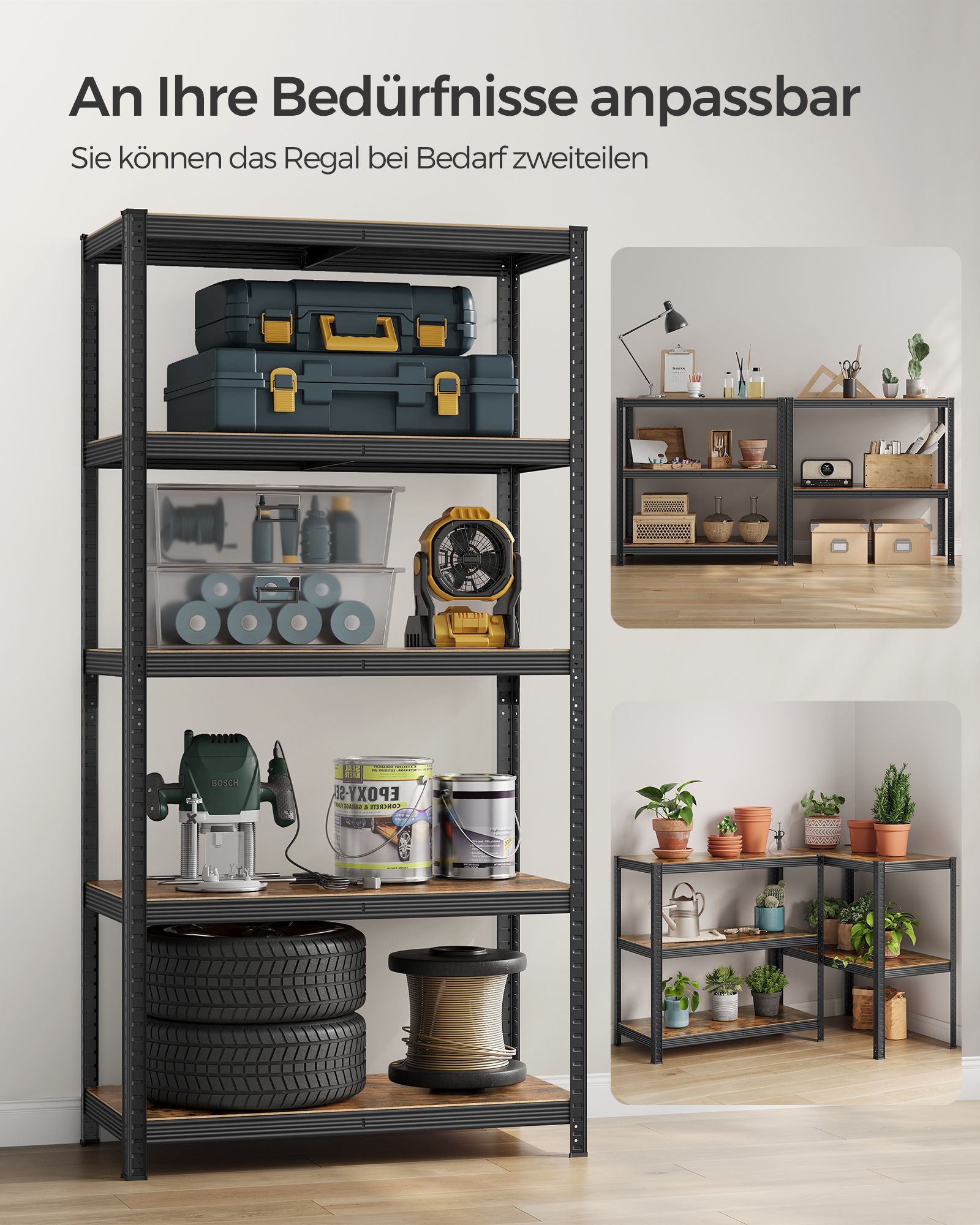 Ši sandėliavimo lentyna yra pagaminta iš aukštos kokybės plieno ir MDF, užtikrinančių ilgaamžiškumą ir stabilumą. Jos vintažinė ruda-juoda spalva suteikia elegancijos ir puikiai dera prie įvairių interjero stilių. Su šia lentyna Jūsų daiktai bus tvarkingai sudėti ir lengvai pasiekiami.