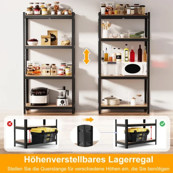 Sandėliavimo lentyna 80x40x160cm, šviesiai rudos ir juodos spalvos, skirta įvairiems sandėliavimo poreikiams namuose ar darbo vietoje. Metalinė konstrukcija užtikrina didelį patvarumą ir stabilumą, o reguliuojamo aukščio lentynų dizainas leidžia pritaikyti lentyną pagal saugomų daiktų dydį.