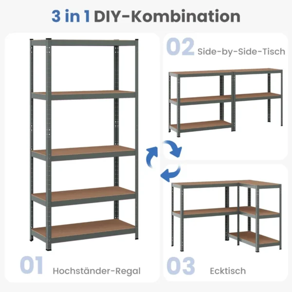 - 5 pakopų lentyna su siauru pločiu ir dideliu saugojimo plotu.