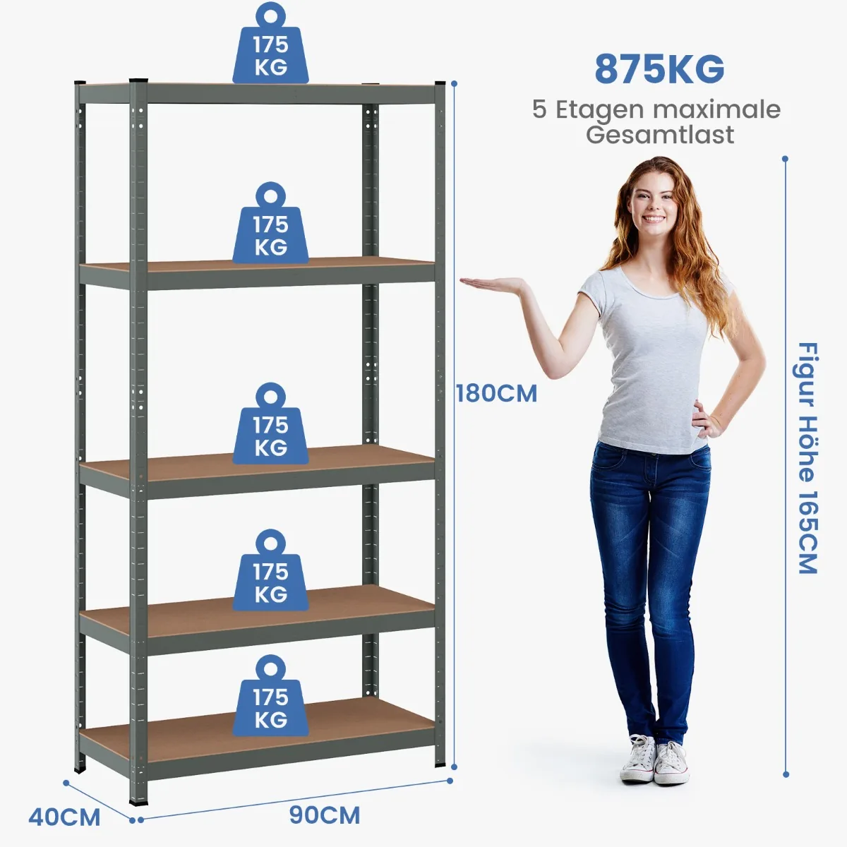 Sandėliavimo lentyna 90x40x183cm, šviesiai rudos ir pilkos spalvos, yra funkcionali ir patvari saugojimo sistema, tinkanti įvairioms patalpoms. Ši 5 pakopų lentyna puikiai tinka garažui, dirbtuvėms, virtuvei ar svetainei, kur reikalinga daug vietos sklandžiam daiktų laikymui.