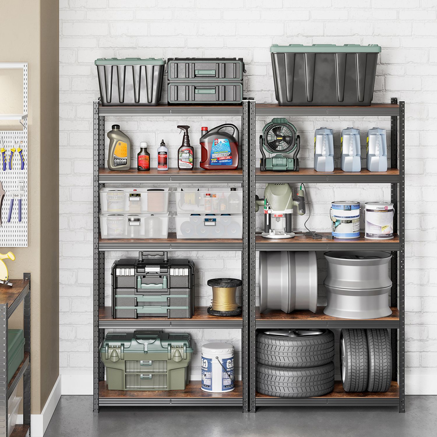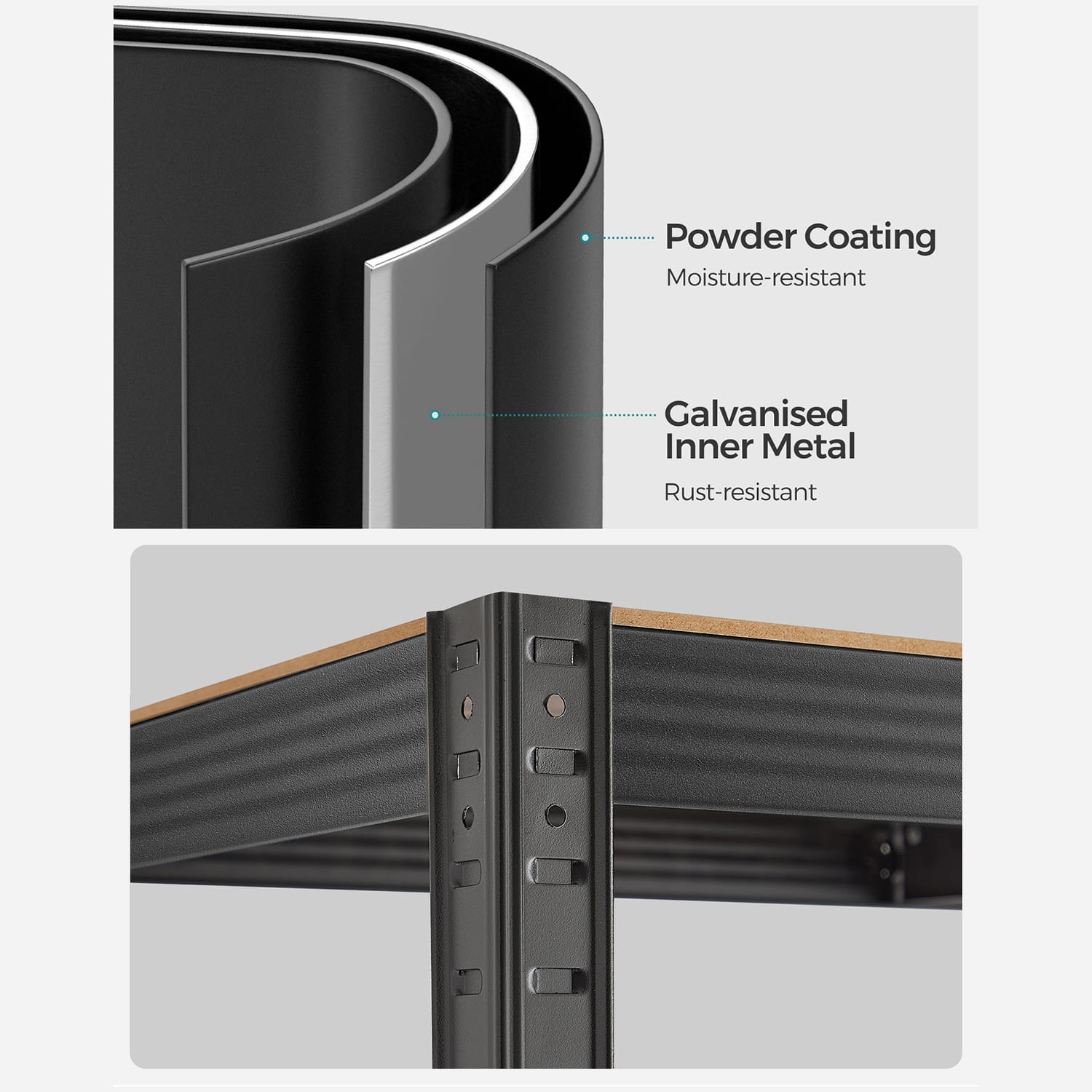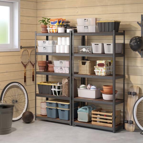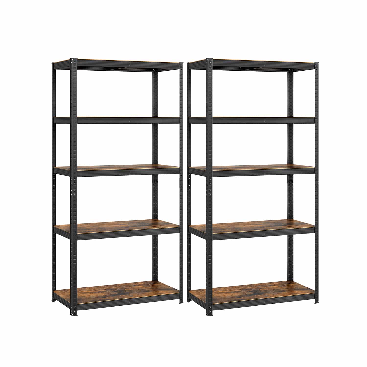 Šis sandėliavimo lentynų rinkinys, kurį sudaro 2 vnt., yra puikus sprendimas jūsų daiktų organizavimui. Lentynos yra pagamintos iš milteliniu būdu dengto plieno ir medžio dulkių plokštė (MDF) (vidutinio tankio medienos plaušų plokštės), todėl yra tvirtos ir ilgaamžės.