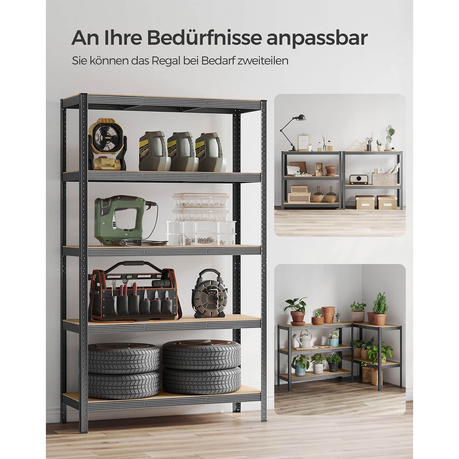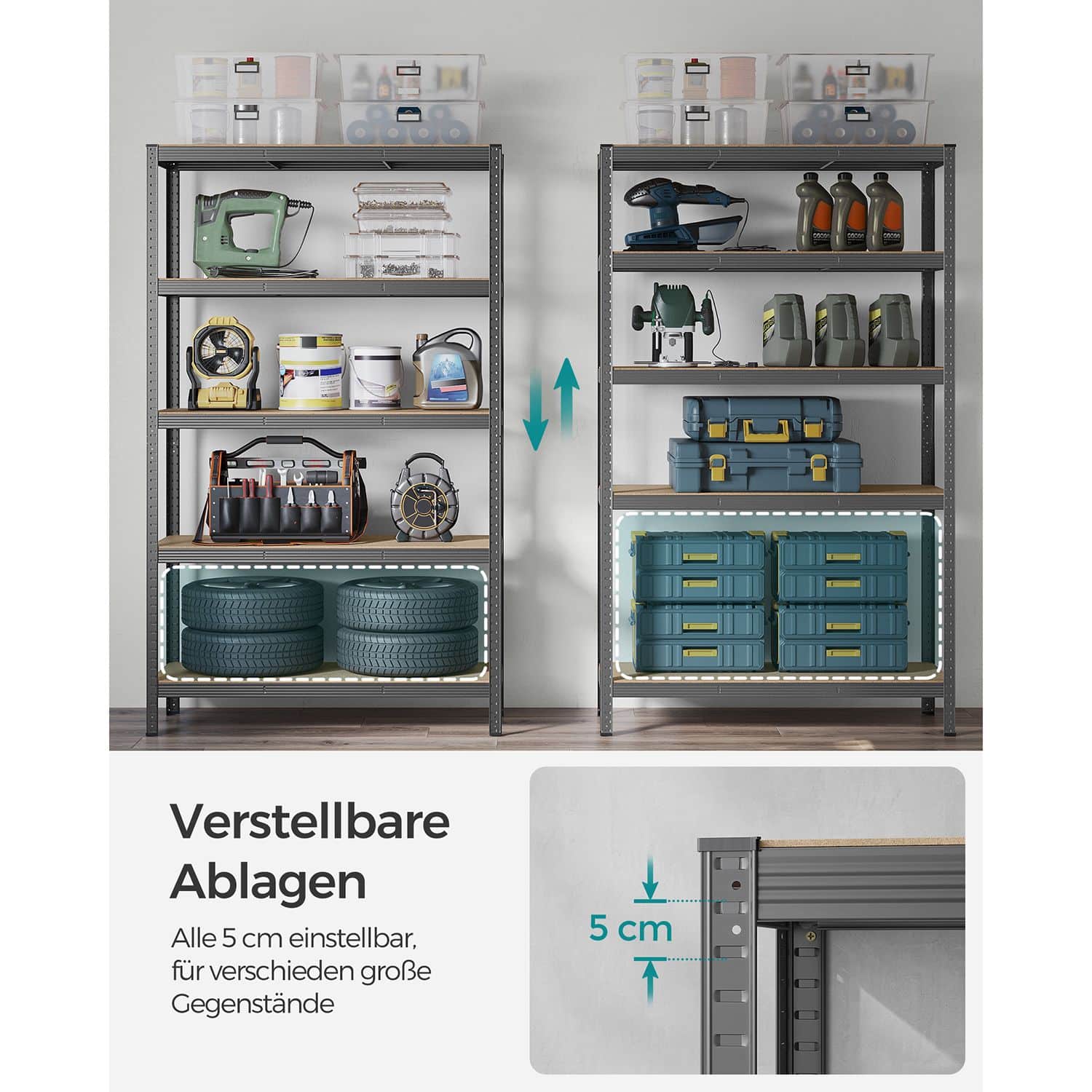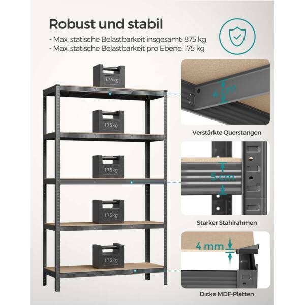 Šis sandėliavimo lentynų rinkinys, kurį sudaro 2 vnt. 200 cm aukščio pilkos spalvos lentynos, yra puikus sprendimas jūsų sandėliavimo poreikiams. Pagamintos iš milteliniu būdu dengto plieno ir medžio dulkių plokštė (MDF) (vidutinio tankio medienos plaušų plokštės), šios lentynos yra tvirtos ir ilgaamžės.