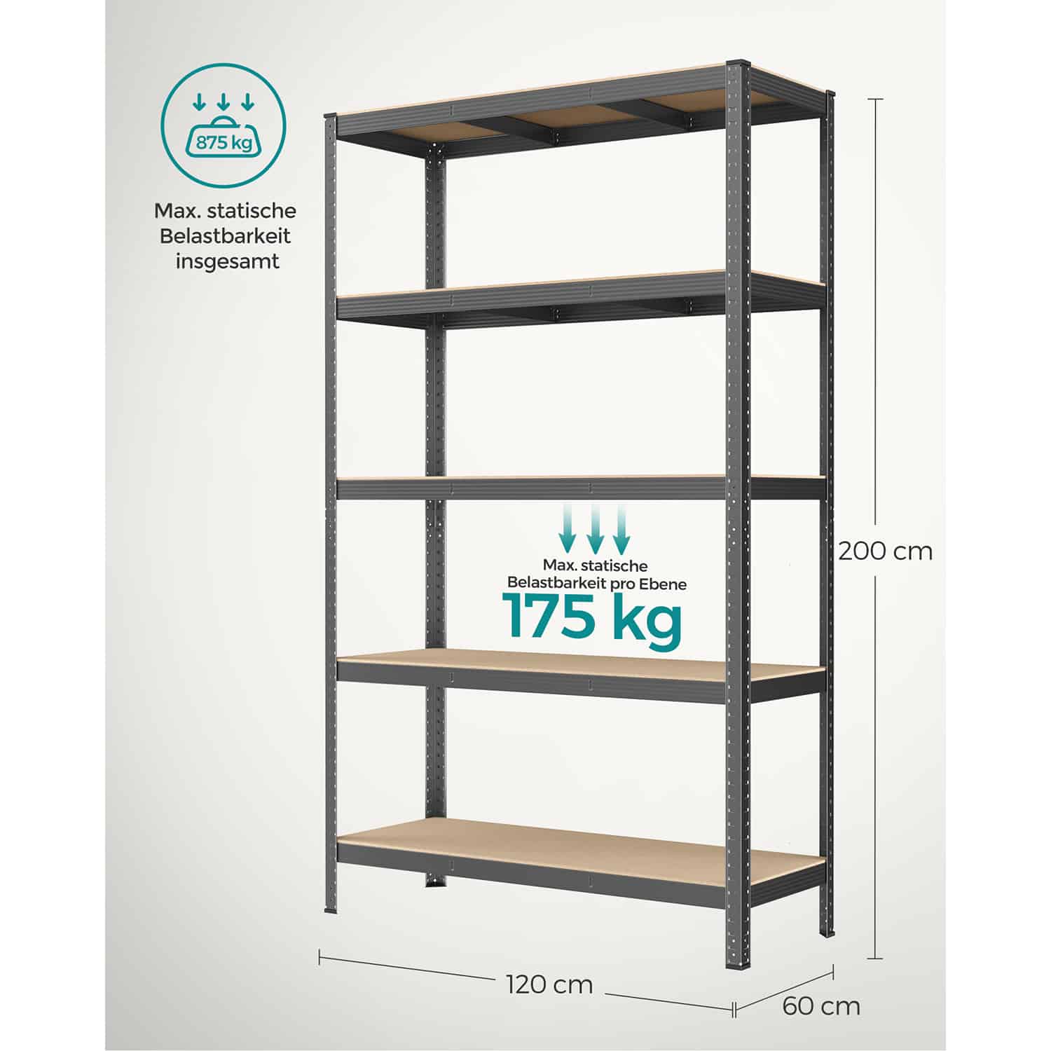 - Maksimali bendra lentynos statinė apkrova: 875 kg