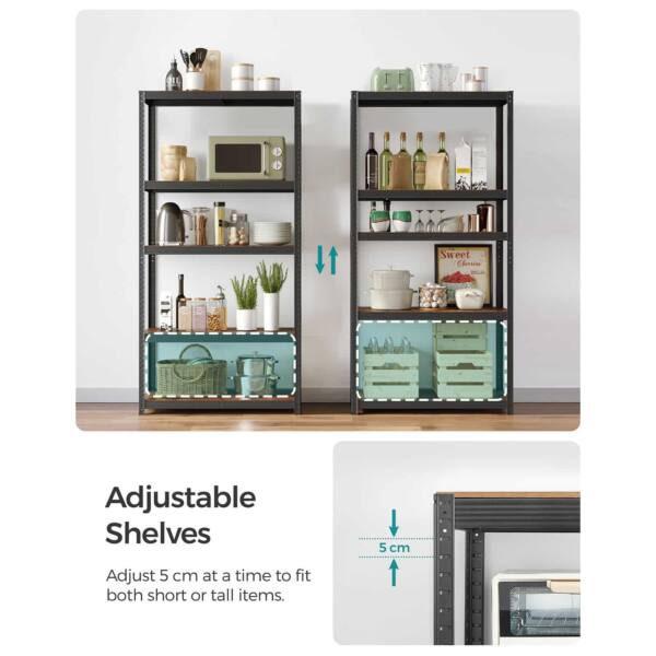 Šis sandėliavimo lentynų rinkinys, kurį sudaro 2 vnt., yra puikus pasirinkimas jūsų namams ar biurui. Lentynos yra juodos-vintažinės spalvos, suteikiančios elegancijos ir stiliaus bet kuriai erdvei.