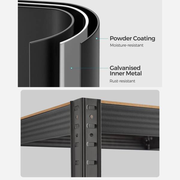 Pagamintos iš aukštos kokybės medžio drožlių plokštė (MDP) ir plieno, šios lentynos yra tvirtos ir ilgaamžės. Jų dydis yra 50 x 100 x 200 cm ), o svoris – 18 kg.