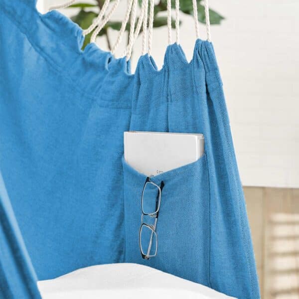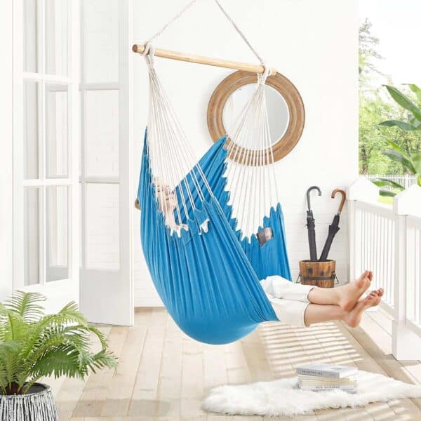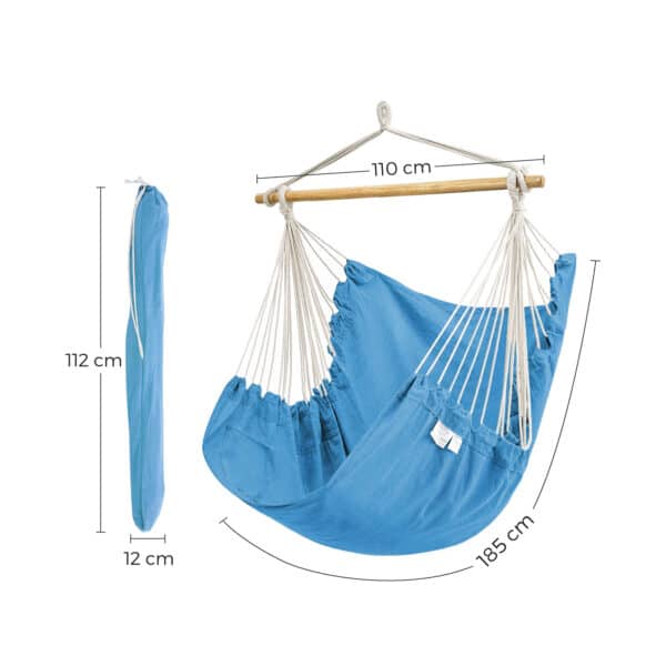 Viduje arba lauke, pakabinkite šį sėdimą hamaką sode arba terasoje ir sukurkite jaukią poilsio zoną gamtoje. Čia galite paskaityti knygą ar ramiai pailsėti po pietų. Arba sukurkite ramybės oazę savo miegamajame ar svetainėje su šia pakabinama kėde. Nesvarbu, ar lauke karšta, ar šalta, šioje pakabinamoje kėdėje galite prisiglausti kaip katė, klausytis muzikos ar žiūrėti filmą ir atsikratyti kasdienės įtampos.