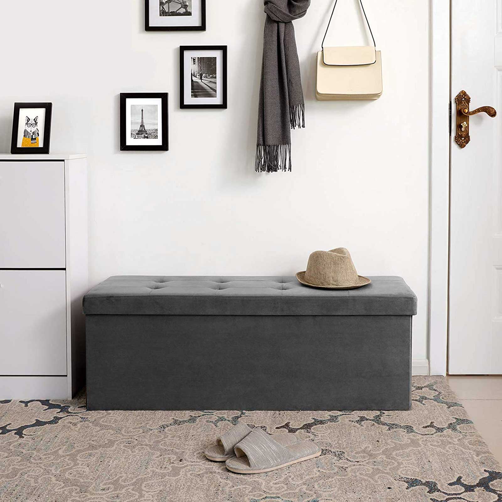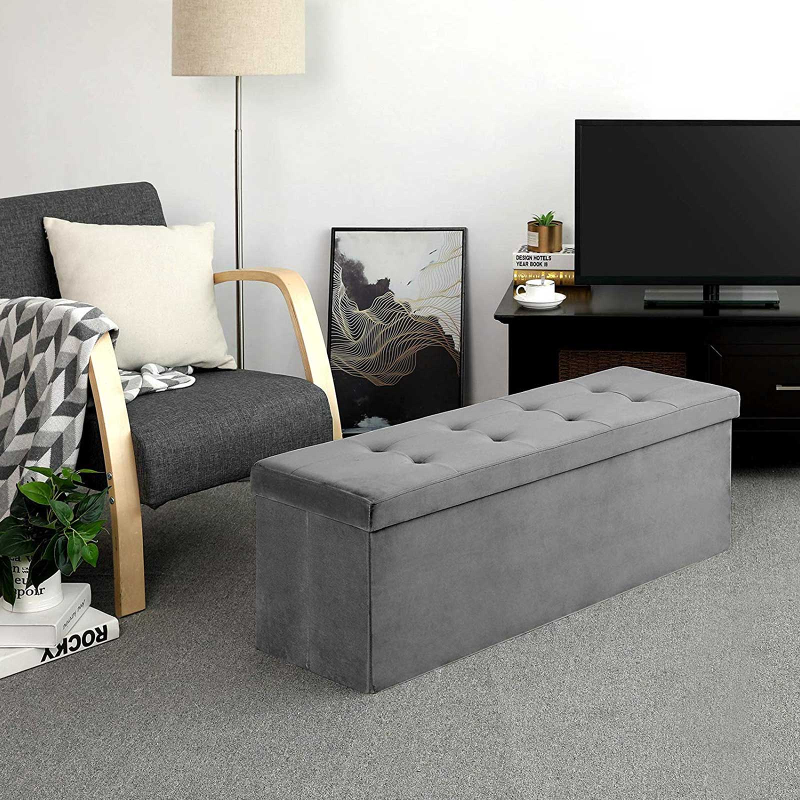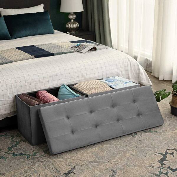 Sėdimoji daiktadėžė 120 L talpos iš aksomo, pilkos spalvos