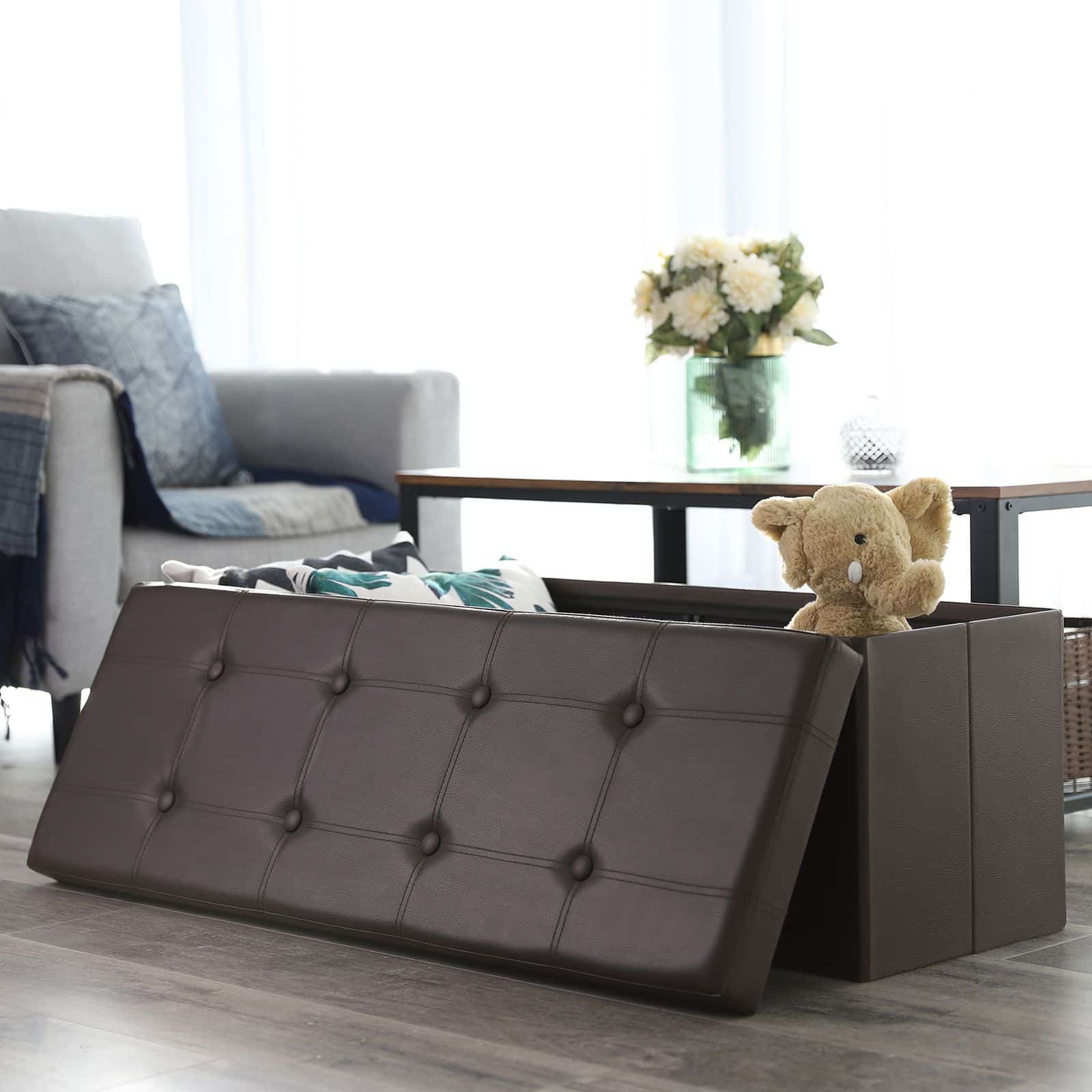 Ar visada reikia daugiau vietos saugykloje? Ar jums niekada neužtenka vietų lankytojams? Jums tikrai patiks sulankstoma Songmics laikymo kėdė. Ji ne tik siūlo sėdėjimo vietą iki trijų žmonių, bet ir turi didelę erdvę įvairiems daiktams, pavyzdžiui, žurnalams, gyvūnų iškamšoms, DVD, drabužiams ir kt. Ši kėdė gali būti naudojama kaip suoliukas, taburetė ir kt. Dėl sulankstymo funkcijos, daiktą taip pat galima sudėti, kad sutaupytumėte vietos, kai jis nenaudojamas. Be to, Songmics sėdynės krūtinė yra gerai pagaminta, visos siūlės tvarkingai susiūtos. Tai tikras vietos taupymas!