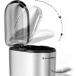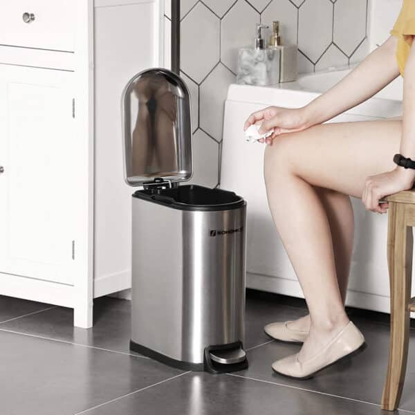 Patogus atidarymas ir tylus uždarymas: Jei norite atidaryti kibiro dangtį, bet neturite laisvos rankos, tiesiog paspauskite kojinį pedalą. Dangtis užsidaro lėtai ir tyliai, kad nebūtų sutrikdyta rami atmosfera jūsų namuose.