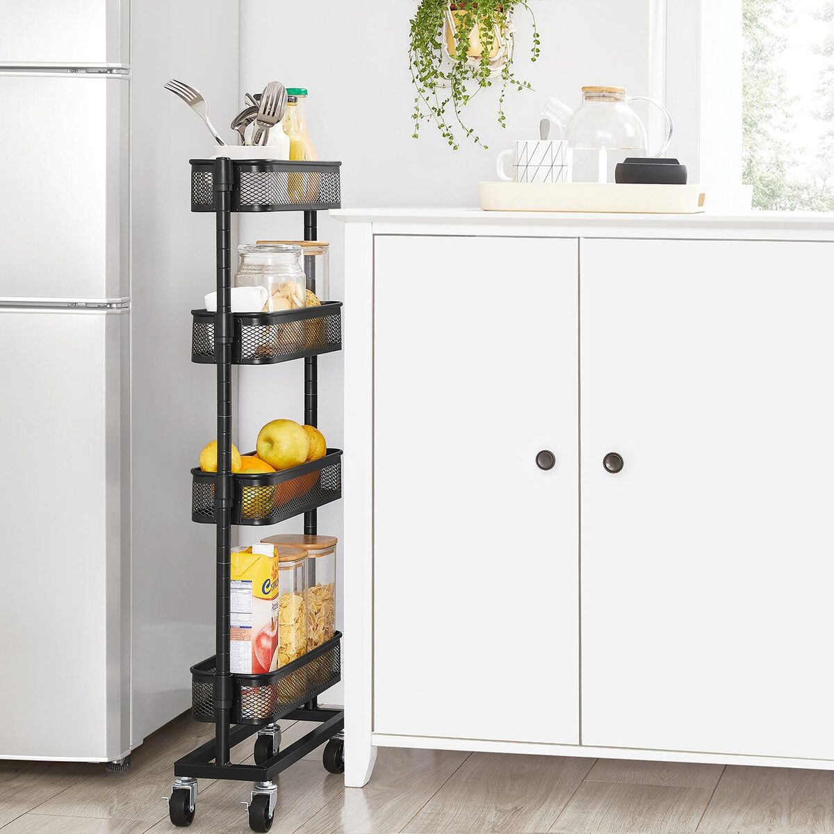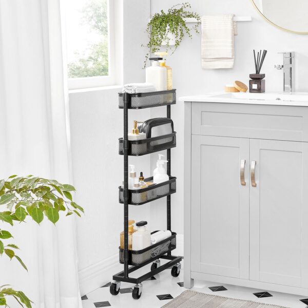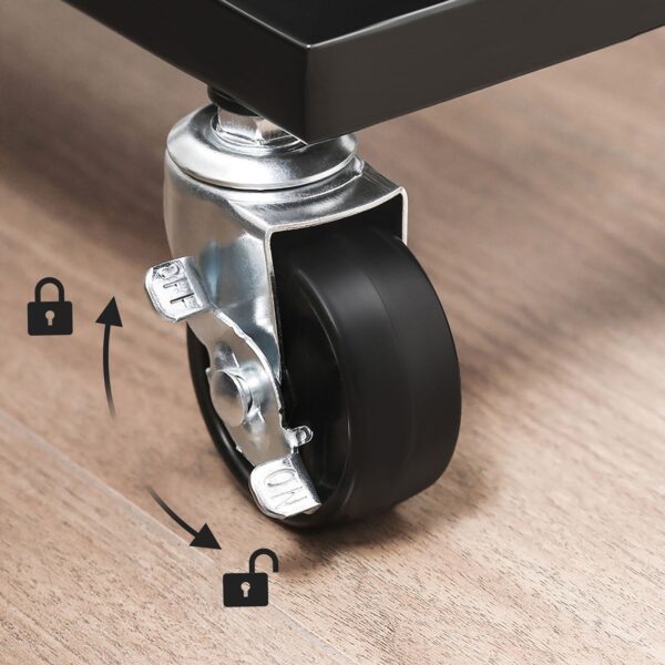 Naudinga biure: ant šio lankstaus vežimėlio padėkite mažas dėžutes su biuro reikmenimis, segtuvus ir skylamušius ir pastumkite jį šalia savo stalo. Taip galėsite greitai pasiekti svarbius darbo priedus ir išlaikyti tvarką ant savo stalo.