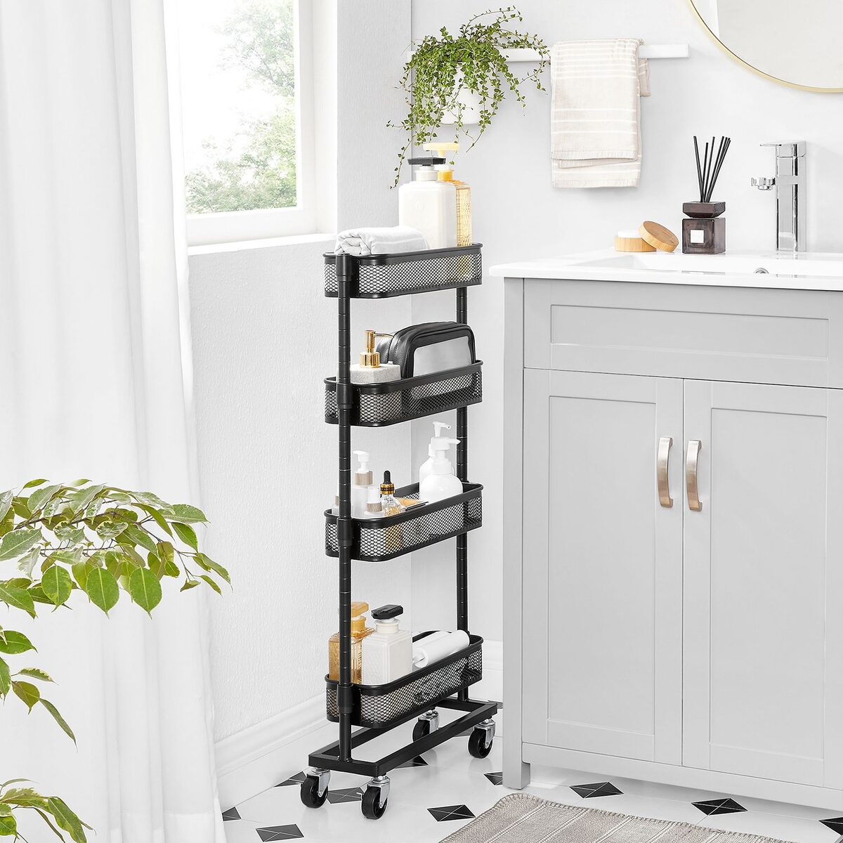 Puikiai tinka vonios kambariui: užpildykite šią patogią vonios lentyną šampūnu, dušo žele ir kempinėle, pastumkite ją šalia vonios ir mėgaukitės karšta burbuline vonia!