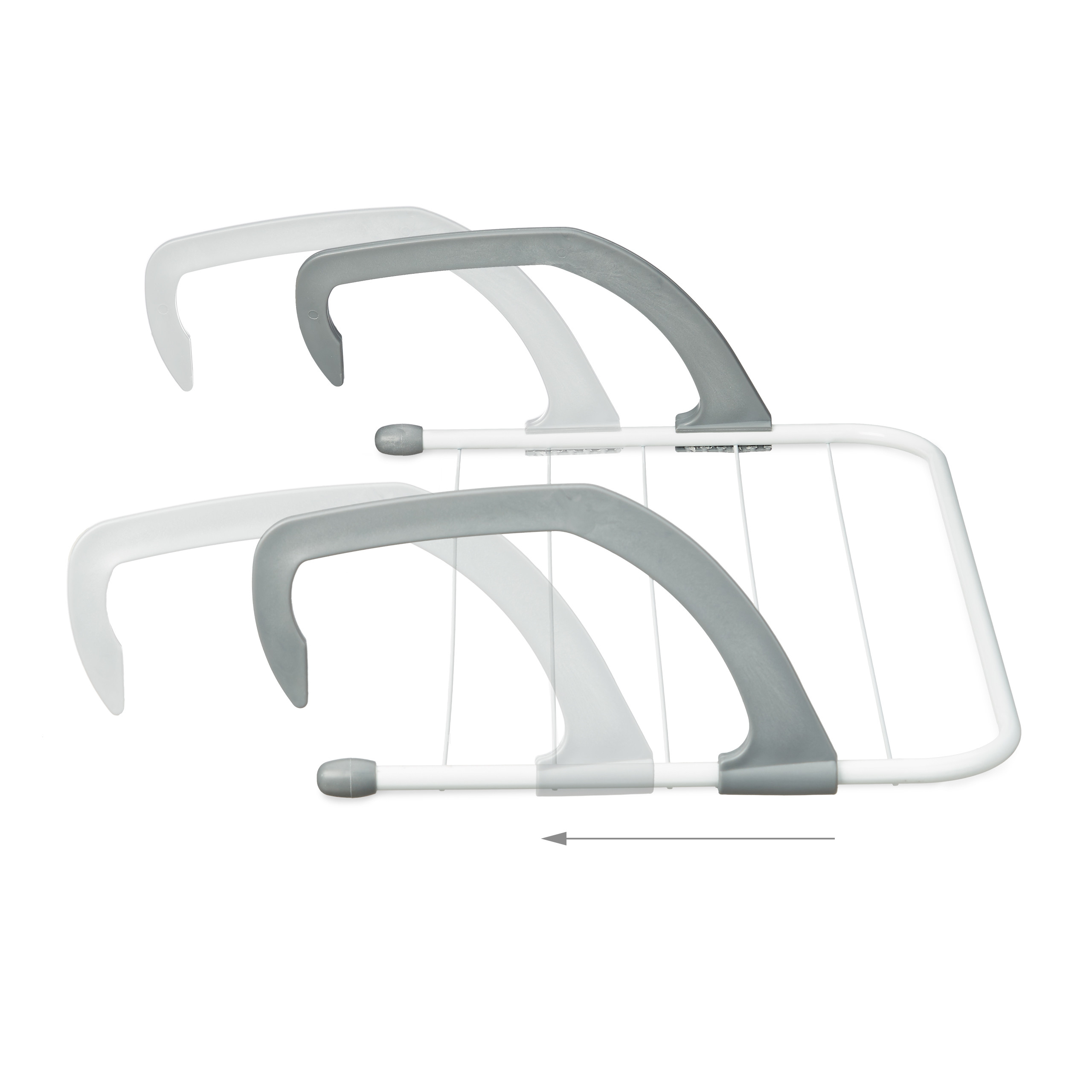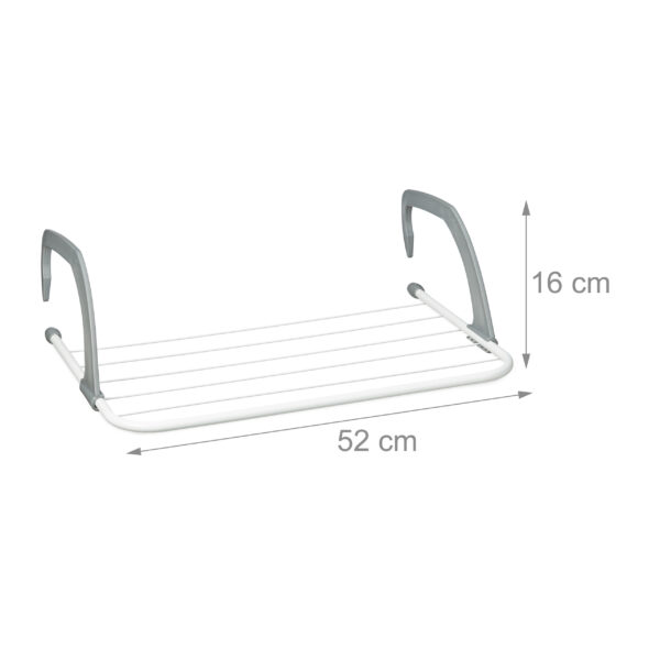 - Reguliuojama konstrukcija: Džiovyklą galima lengvai pritvirtinti prie radiatoriaus, balkono turėklų, atvirų durų ar dušo sienelės.