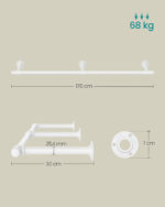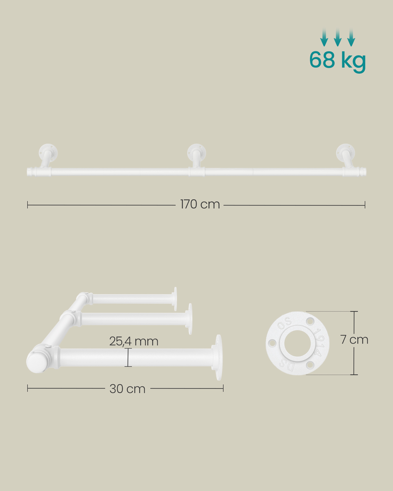 • Maksimali statinė apkrova: 68 kg – leidžia saugiai laikyti net ir sunkesnius drabužius ar daiktus.