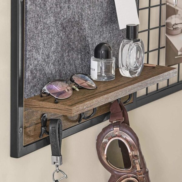 Sieninė drabužių kabykla 67x12x32 cm, juodos/rudos spalvos, yra puikus pasirinkimas tiems, kurie ieško elegantiško ir funkcionalaus sprendimo drabužių ir aksesuarų laikymui. Jos paprastas ir klasikinis dizainas puikiai tiks bet kuriame prieškambaryje ar kambaryje, kuriam reikia daugiau vietos daiktams laikyti.