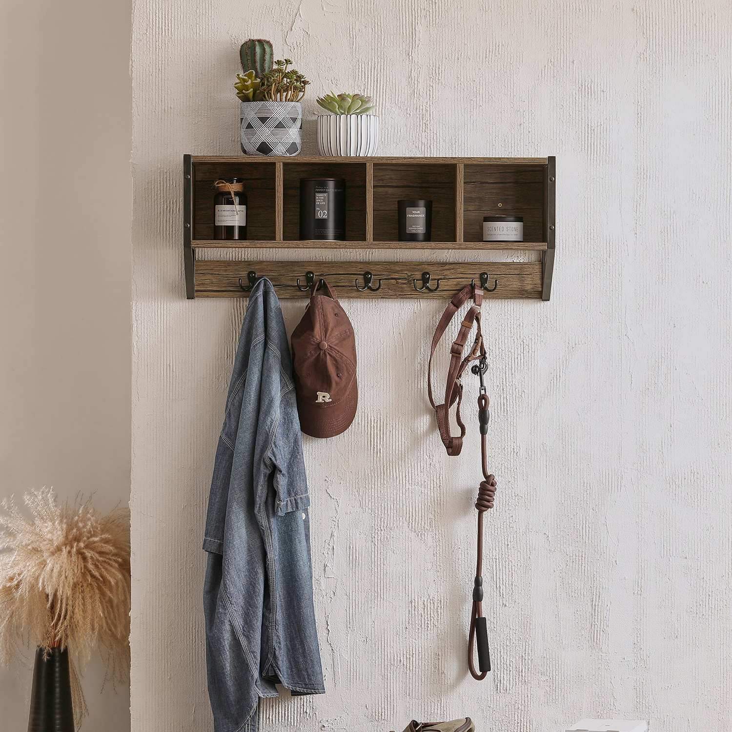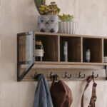 Sieninė drabužių kabykla 73x16x28 cm, rudos/juodos spalvos, yra puikus sprendimas jūsų namų erdvės organizavimui. Ši kabykla ne tik suteikia elegancijos ir stiliaus jūsų interjerui, bet ir padeda efektyviai išnaudoti turimą vietą.
