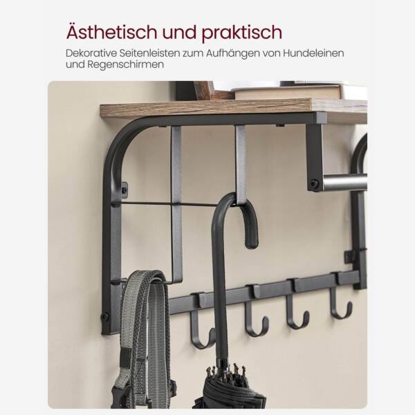 Ši sieninė drabužių kabykla su 5 kabliukais, vintažinės pilkos-juodos spalvos, yra puikus sprendimas jūsų namų interjerui. Ji ne tik funkcionali, bet ir stilinga, suteikianti jūsų erdvei unikalų charakterį.