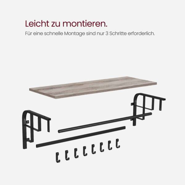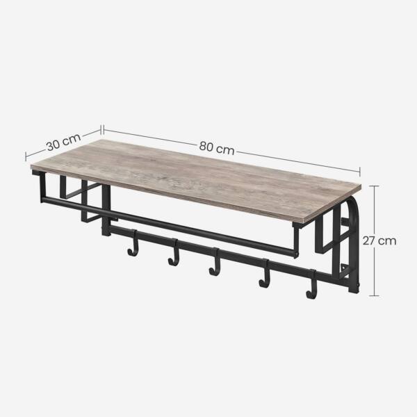 Pagaminta iš aukštos kokybės medžio drožlių plokštė (MDP) ir plieno, ši kabykla yra tvirta ir ilgaamžė. Jos matmenys yra 30 x 66 x 27 cm , o svoris siekia 3,8 kg, todėl ji lengvai montuojama ir patikimai laikosi ant sienos.
