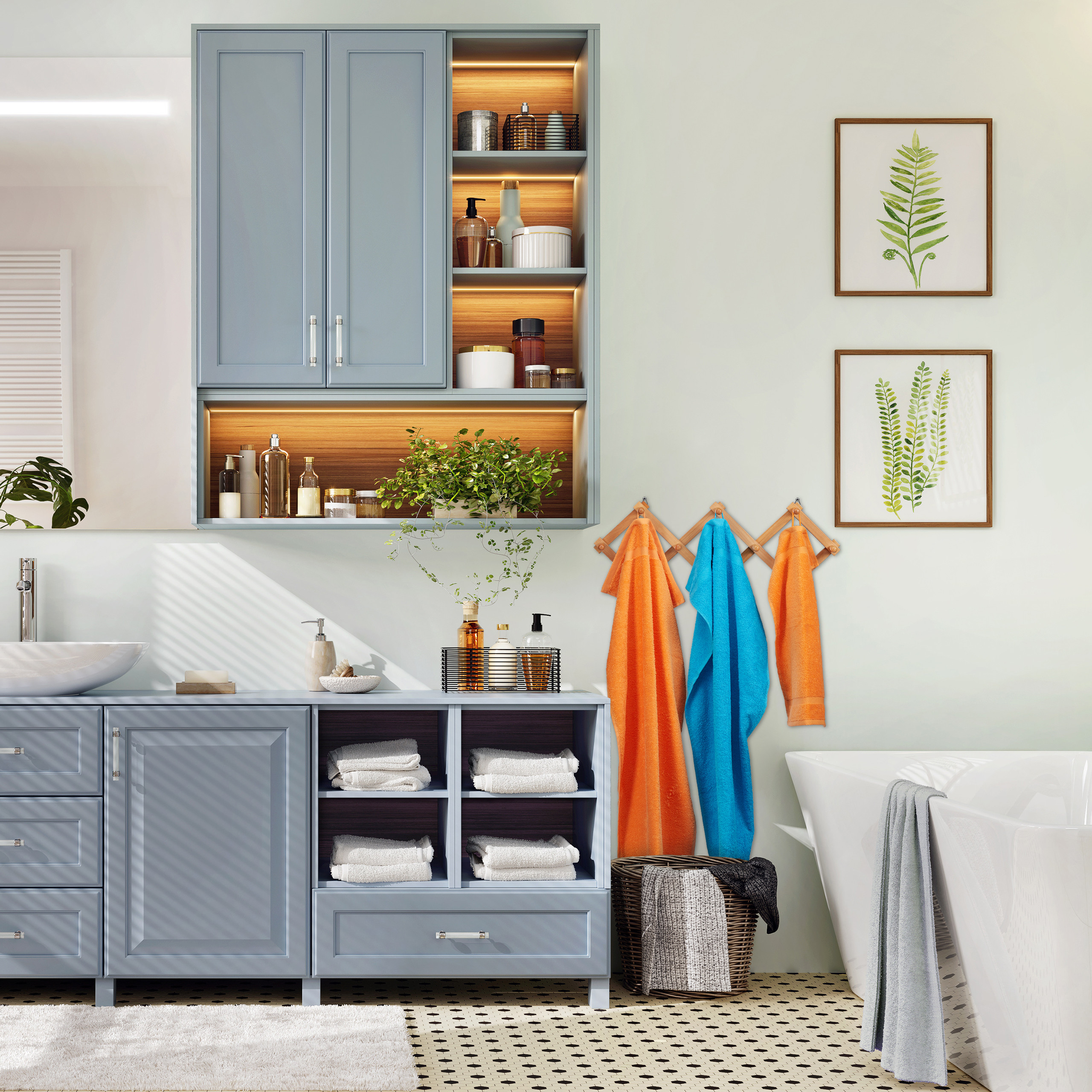 - Universalumas: Ši lanksti sieninė kabliukų lentyna leidžia greitai sutvarkyti prieškambarį, virtuvę ar vonios kambarį.
