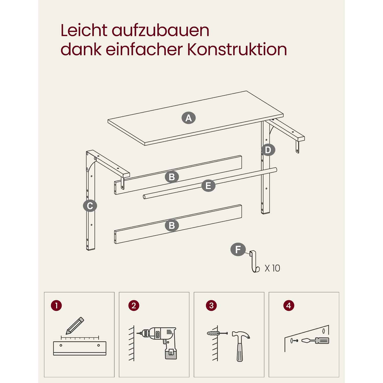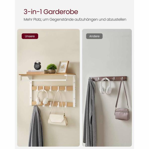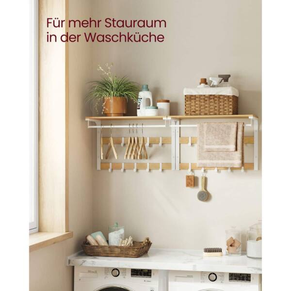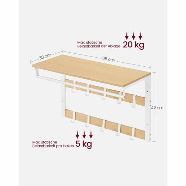 Sieninė kabykla su lentyna ir 10 nuimamų kabliukų yra puikus sprendimas jūsų namų ar biuro erdvei. Ši kabykla ne tik suteikia papildomą vietą daiktams laikyti, bet ir padeda išlaikyti tvarką bei organizuotumą.