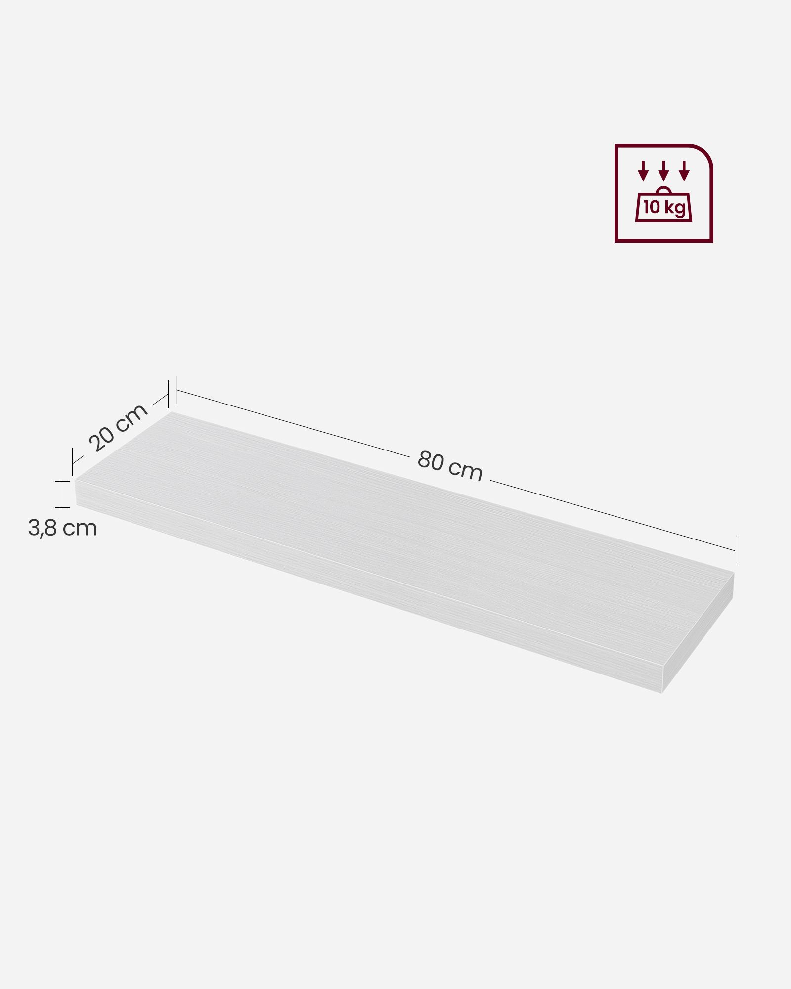 Sieninė lentyna 20x80x3,8 cm, baltos spalvos
