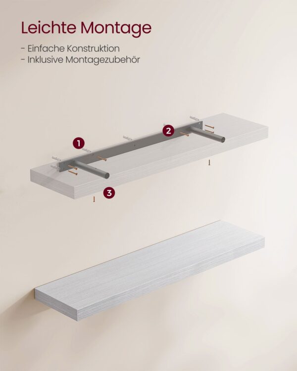 Ši sieninė lentyna yra pagaminta iš aukštos kokybės MDF plokštės ir tvirto plieno, užtikrinančių ilgaamžiškumą ir stabilumą. Jos subtili klevo balta spalva lengvai derės prie įvairių interjero stilių, o kompaktiški matmenys leis ją pritaikyti net ir mažesnėse erdvėse.
