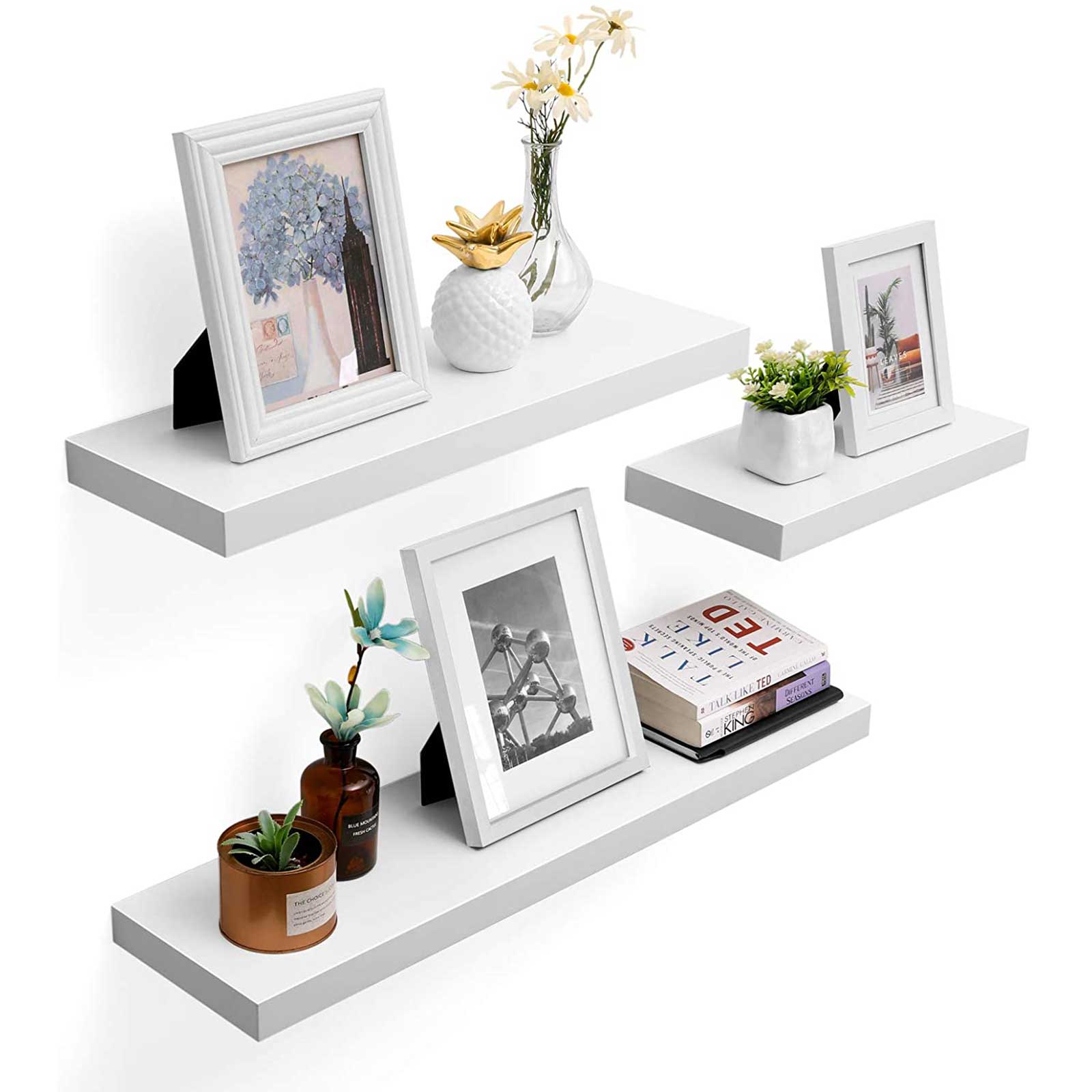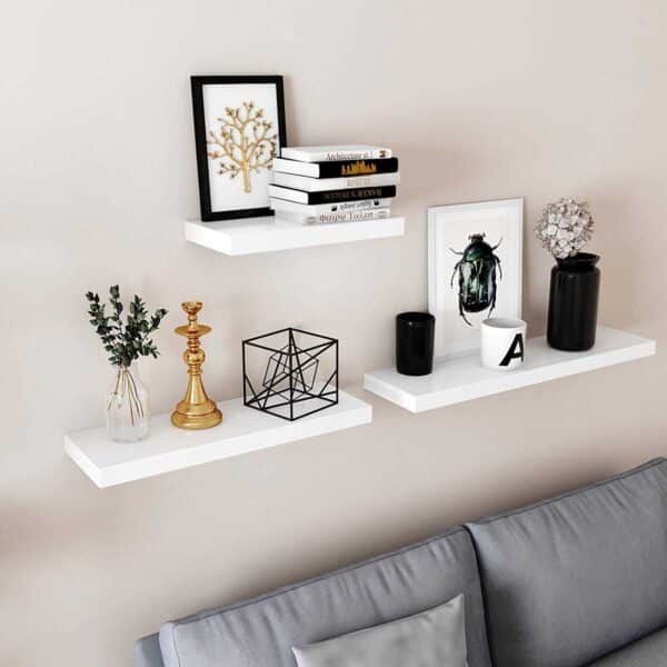 Naudokite modernią baltą plaukiojančią lentyną (60 x 20 x 3,8 cm) svetainėje, kad galėtumėte rodyti savo šeimos nuotraukas, vonios kambaryje laikyti muilą ir kitus higienos reikmenis arba virtuvėje laikyti prieskonius.