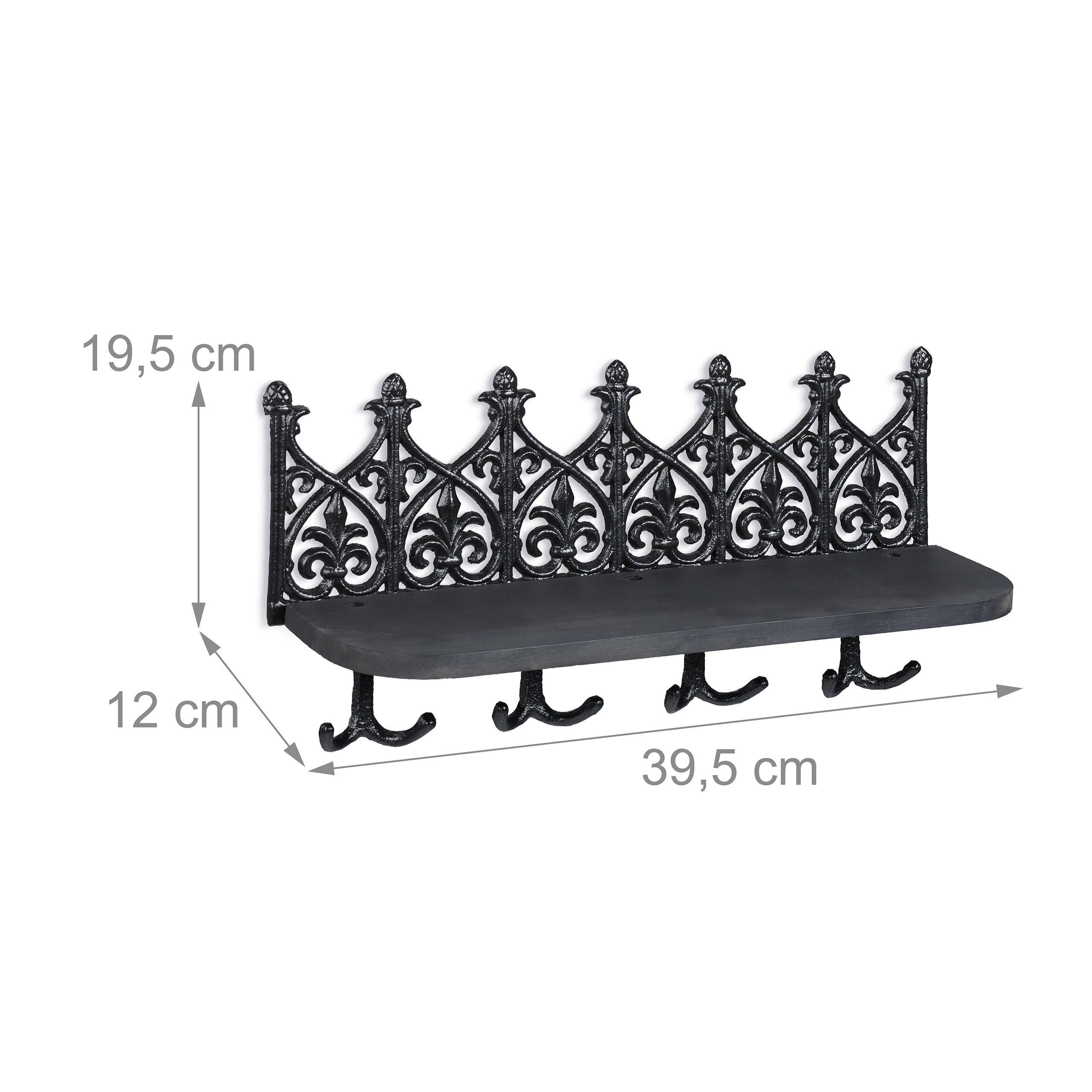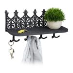 Sieninė lentyna raktams 19,5×39,5×12 cm, juodos spalvos