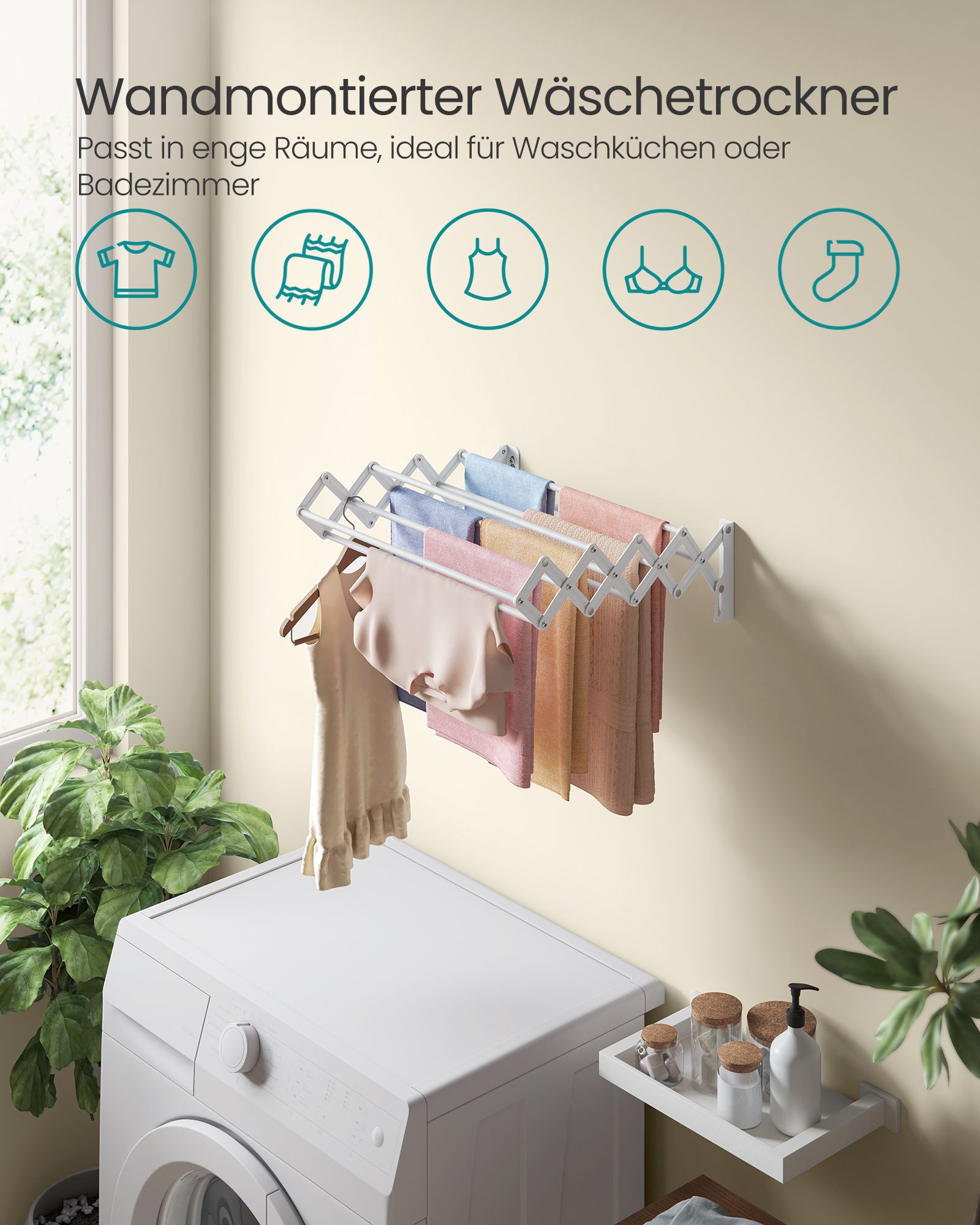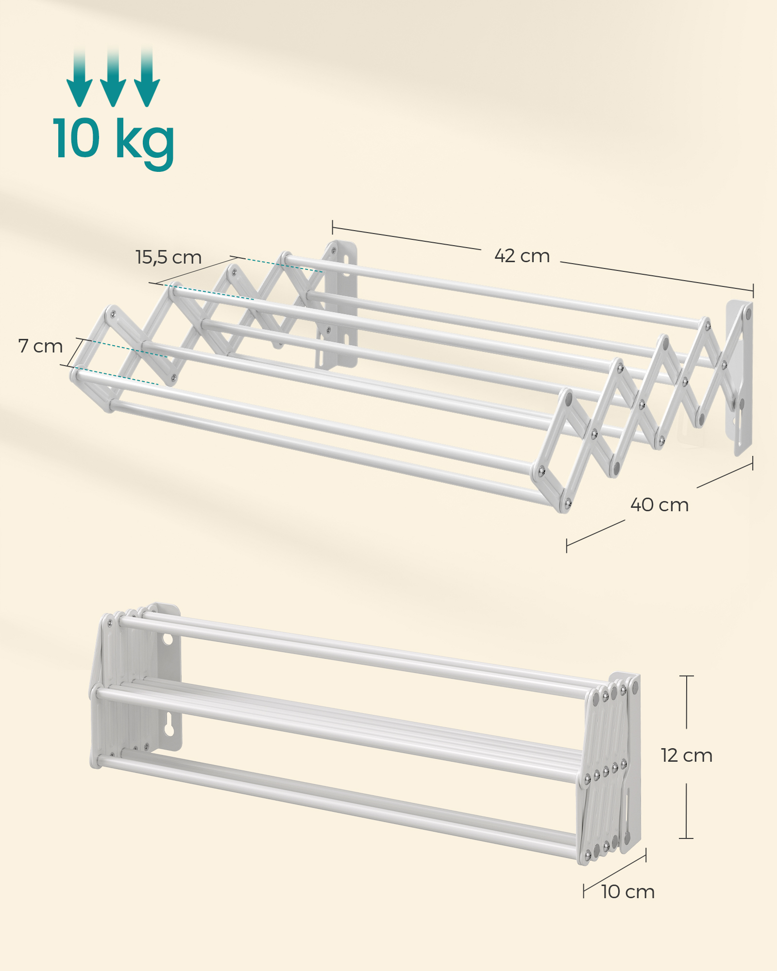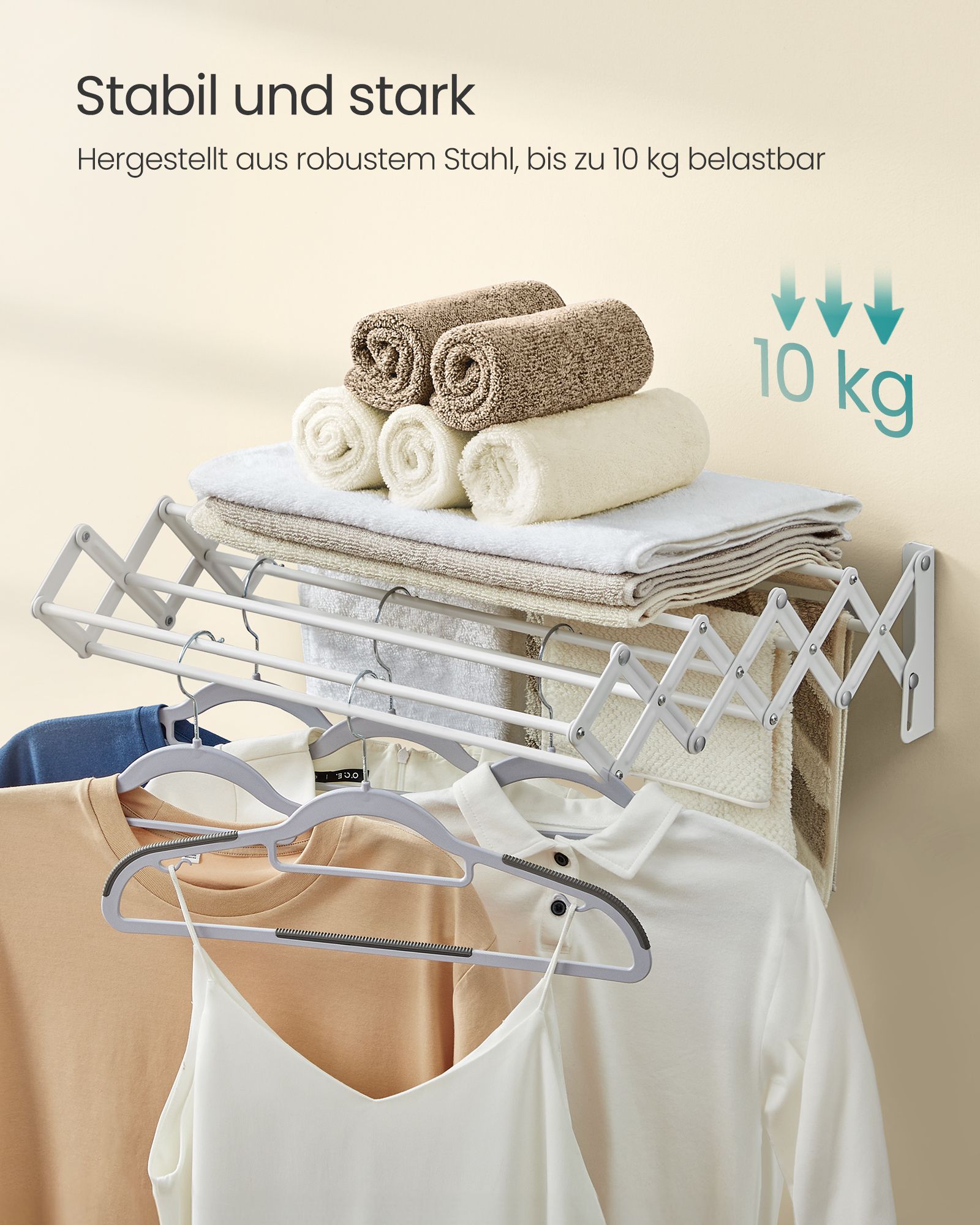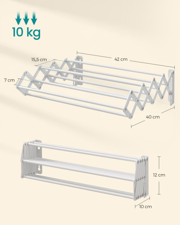 • Maksimali statinė apkrova: 10 kg – pakankamai tvirta, kad išlaikytų Jūsų skalbinius.