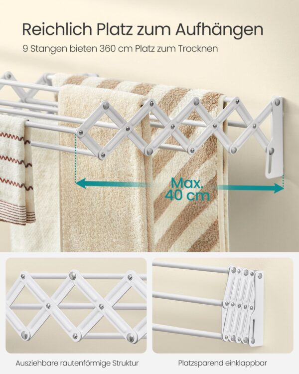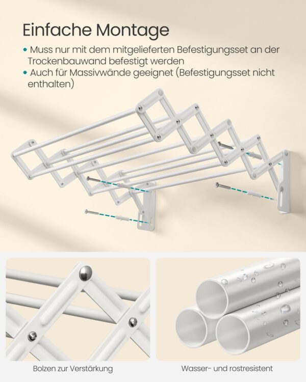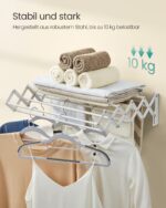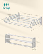 Ši sieninė skalbinių džiovyklė yra puikus pasirinkimas tiems, kurie vertina praktiškumą ir estetiką. Jos modernus dizainas ir kokybiškos medžiagos užtikrina, kad ji tarnaus ilgai ir patikimai. Pasirinkite šią džiovyklę ir mėgaukitės patogumu bei stiliumi savo namuose.