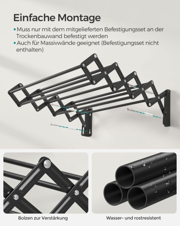Ši sieninė džiovyklė yra puikus pasirinkimas tiems, kurie vertina praktiškumą ir estetiką. Jos kompaktiškas dizainas leidžia sutaupyti vietos, o tvirta konstrukcija užtikrina ilgaamžiškumą. Pasirinkite šią džiovyklę ir mėgaukitės patogumu bei stiliumi savo namuose.