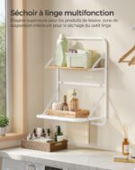 Pristatome elegantišką ir funkcionalią sieninę skalbinių džiovyklę su lentynomis, kuri puikiai tiks bet kuriame namų interjere. Ši džiovyklė ne tik padės efektyviai išdžiovinti jūsų skalbinius, bet ir suteiks papildomos vietos daiktams laikyti.