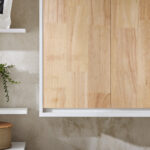 Ši sieninė vonios spintelė 68x20x48 cm, baltos ir šviesiai rudos spalvos, yra modernus ir praktiškas sprendimas jūsų vonios kambariui. Jos elegantiškas dizainas suteikia jūsų interjerui išskirtinumo ir stiliaus.