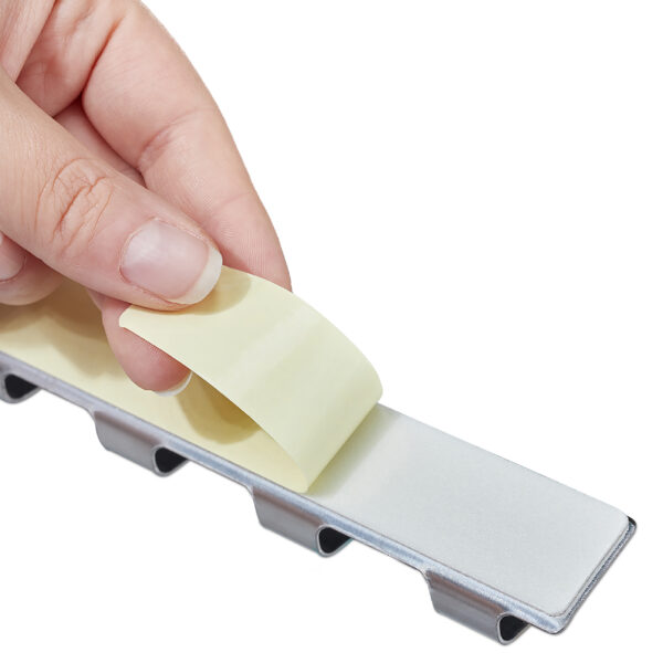 Norėdami pasiekti optimalų laikymą, prieš tvirtindami nuvalykite sienos ar durų paviršių. Nuėmę apsauginę plėvelę, tvirtai paspauskite kabliuko juosteles ir palaukite apie 24 valandas, kol ką nors pakabinsite.