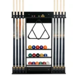 Sieninis biliardo lazdų stovas 79x8x91 cm, juodos spalvos, skirtas patogiam biliardo reikmenų laikymui. Šis lazdų stovas padeda tvarkingai sudėti lazdojas, kamuoliukus bei kitas biliardo priemones, optimizuojant erdvę žaidimų kambaryje ar bare.