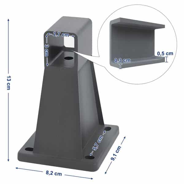 Aukšta kokybė ir tvirtumas: Sieninis laikiklis pagamintas iš tvirto PA66 plastiko, kuris patikimai laiko šoninę markizę. Reguliariai tikrinkite varžtus, kad užtikrintumėte saugumą.
