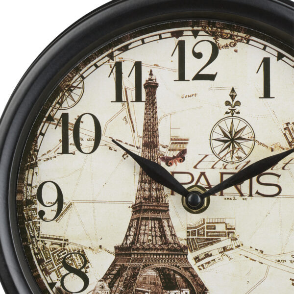 Įneškite elegantiško vintažinio žavesio į savo namus su šiuo išskirtiniu sieniniu laikrodžiu. Jo unikalus dizainas, įkvėptas Eifelio bokšto motyvų, suteikia jūsų interjerui subtilų Paryžiaus atmosferos pojūtį. Šis retro stiliaus laikrodis puikiai tinka bet kokiai patalpai, suteikdamas jai išskirtinumo ir elegancijos.