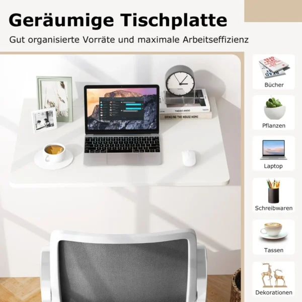 Sieninis nešiojamojo kompiuterio stalas 80x60x45cm baltos spalvos – praktiškas sprendimas darbo erdvei sutvarkyti. Sulankstomas ir reguliuojamas dizainas leidžia efektyviai naudoti vietą ir pritaikyti stalą įvairioms reikmėms. Tvirtos medžio masyvo konstrukcijos bei trikampės atramos užtikrina stabilumą ir ilgaamžiškumą.