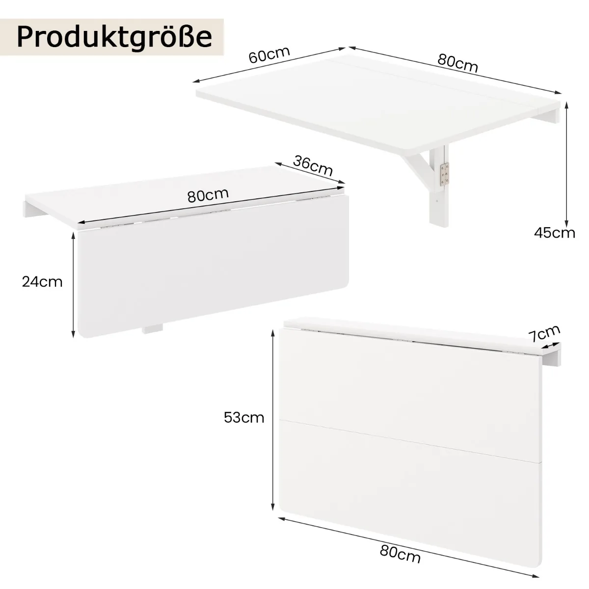 - Stalviršio dydis pusiau sulankstyto: 80 x 36/24 cm (plotis x gylis)